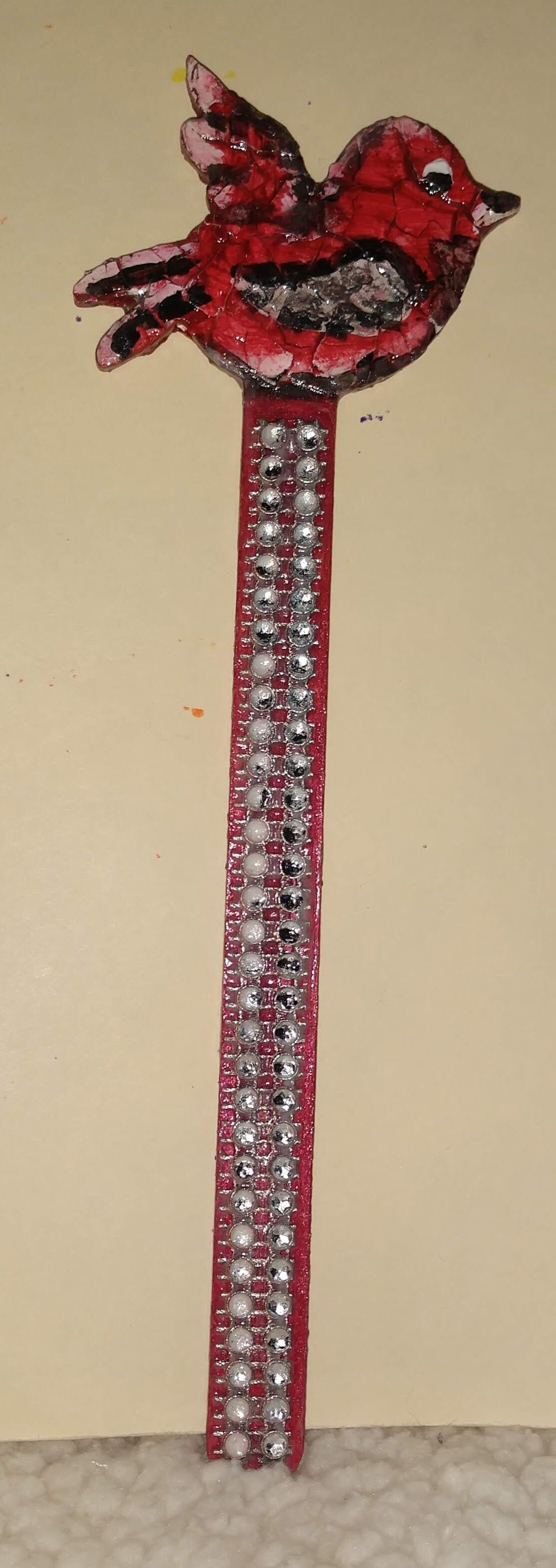 Bookmark is eggshell on a wooden base. Painted with watercolors and sealed. Height 9in. Created 2023